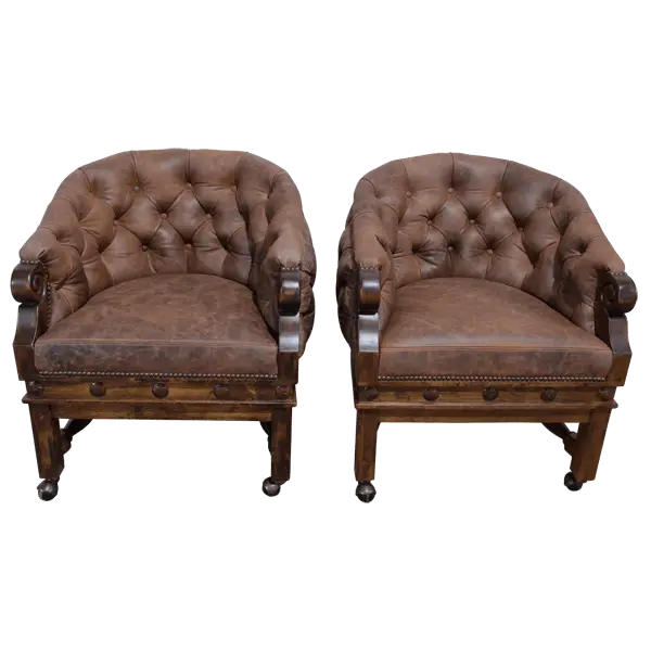 The Elegante Poker 16 Chair exudes refined sophistication, blending classic form with artisanal craftsmanship. Upholstered in supple, full-grain brown leather, this handcrafted chair invites both comfort and distinction. The deeply tufted seat and backrest create an enveloping silhouette that combines elegance with support — ideal for both leisurely gatherings and refined poker nights.